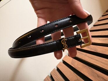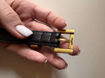 Crni kaiš sa metalnom kopčom u obliku slova “M” - Materijal: glatka veštačka ili prirodna koža (na dodir deluje čvrsto i glatko) - Boja kaiša: crna, mat završnica - Kopča: velika metalna kopča u o...