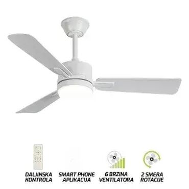 ***2 smera rotacije** Jačina svetla: Max. 18WIzvor svetla: Integrisani LEDBoja svetla: 3000K,4000K,6400KSnaga: Motor 30WBrzina: 6Broj obrtaja: 164-262rpmKontrola: Daljinska ili putem telefonske aplikacije**Boja: Bela** Materijal: ABS + MetalDimenzije: v: 465mm Ø 1070mmStepen zaštite: IP20Proizvođač: Forma**_2 GODINE GARANCIJE_**