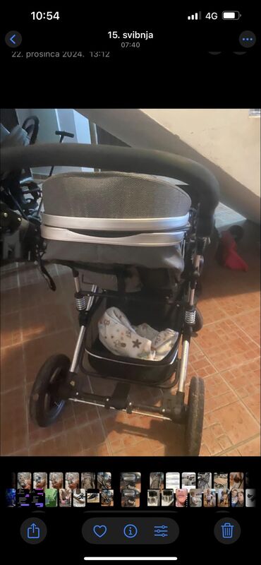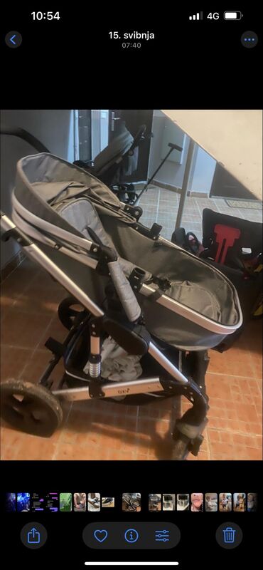 - Sedište/ležaljka u sivoj tkanini sa zaštitnim rubom; naslon i hauba podesivi