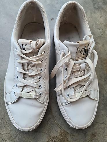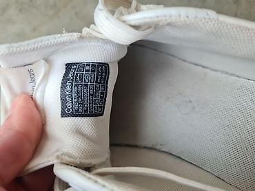 - Logotipi: CK na jezičku i metalna pločica na pertlama; veliki CK otisak na peti