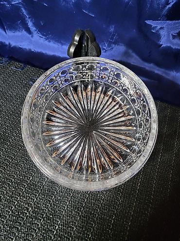 Kristalna bombonjera sa poklopcem na postolju - Materijal: kristalno