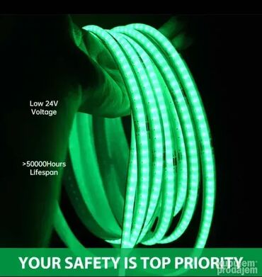 Traka zalivena u silikon vrhunskog kvaliteta, pogodna za spoljnu montazu, bazene, baste, dvoriste, tende, cena cob trake RGB u silikonu 1750rsd/ duznom metru osnovno pakovanje 5m