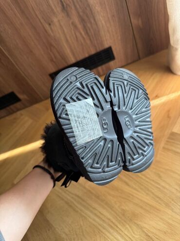 Stilske, tople i praktične UGG čizmice za decu, u elegantnoj crnoj boji sa dekorativnim mašnama. Nikad nošene zbog pogrešnog broja, kupljene u Francuskoj.