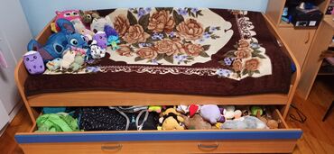 - Donji deo: prostrana izvlačna fioka pune širine kreveta sa dve metalne ručke; pogodna za posteljinu, igračke ili sezonske stvari.