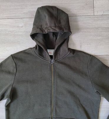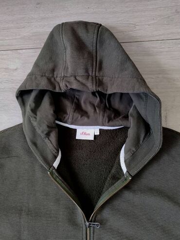 Predobar i bas kvalitetan pamucni S.Oliver duks na zip, besprekoran. Materijal kao sitan rebrasti pamuk.