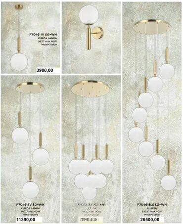 Jačina: Max. 40W Tip grla: 8xE27 Napon: 220-240v Boja: Zlatna+Bela