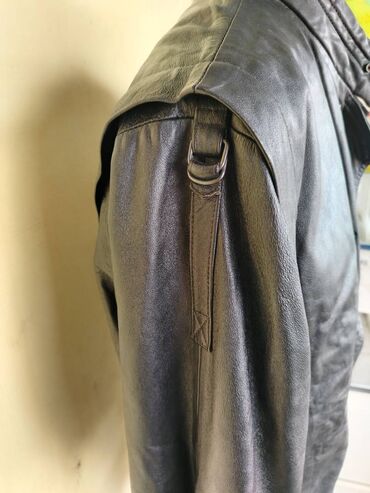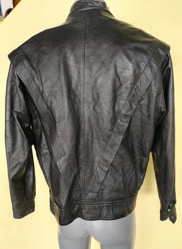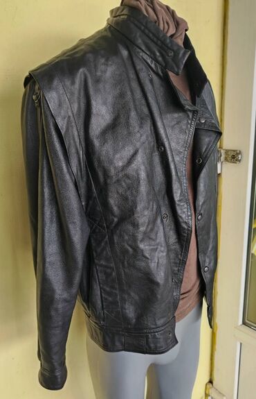 Muška crna biker jakna sa kapuljačom - Materijal: veštačka koža sa mat završnicom; unutrašnji deo sa sivim pamučnim/plišanim dukser segmentom i kapuljačom. - Zatvaranje: centralni rajsferšlus, dod...
