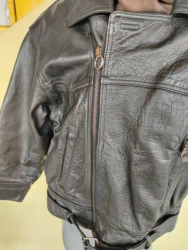 Muška crna biker jakna sa kapuljačom - Materijal: veštačka koža sa mat završnicom; unutrašnji deo sa sivim pamučnim/plišanim dukser segmentom i kapuljačom. - Zatvaranje: centralni rajsferšlus, dod...