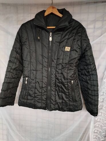 Ženska lagana puffer jakna, crna. - Kroj: strukirani, sa visokim okovratnikom. - Zatvaranje: obostrani rajsferšlus (dvosmerni zip) po sredini. - Spolja: vodoodbojni, glatki materijal s horizontaln...