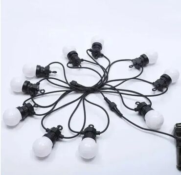 LED dekorativne sijalice u boji 10 kom. u nizu E27 3W IP65. Karakteristike: 8m (kabl + 10 sijalica u boji), Snaga: 3W, Radni napon: AC220-240V, Radni fluks: 50lm/W, Energetska efikasnost: A+, Godišnja potrošnja energije (kWh/1000): 3, Radna temperatura: -30/+50°, Tip grla: E27, IP 65 – vodootporne. U ponudi imamo boju svetla: 6000K, 2700K i RGB (promena boje). Otpornost na vetar, kišu, sunce, sneg.