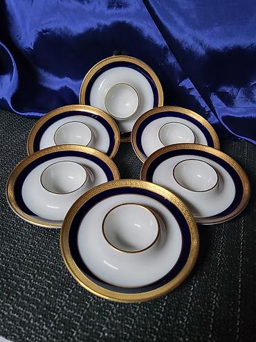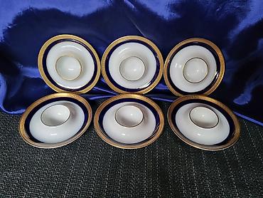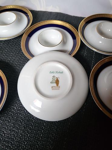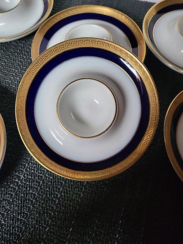 Luksuzna postolja za jaja ( zlatan bokal na zigu),porcelan,pravi kobalt,24na pozlata.