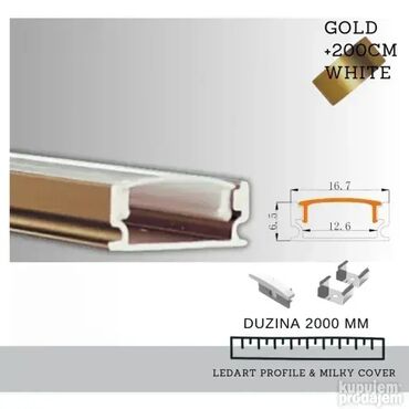 Pokupiti na licu mestaMEGGA, 2M LEDART-N GD ALUMINIJUMSKI PROFIL 13669-17 PC MILKY, 013669 Aluminiumski Profil za led traku. Boja: Zlato Dužina 2m. Više dimenzija na slici broj 2- tehniči prikaz.