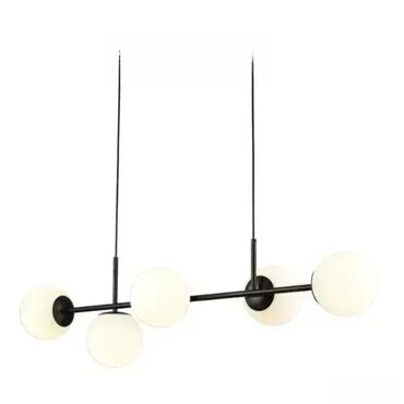 Unesite dozu elegancije i savremenog stila u svoj dom sa Lusterom VISILICA 5L E27 BK WH. Ovaj luster kombinuje crni metalni ram sa pet belih staklenih kugli, stvarajući prelepu kompoziciju koja će postati centar pažnje u svakom prostoru.