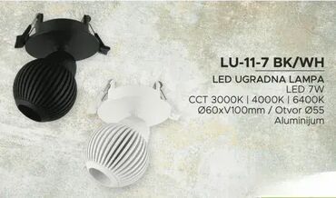 Pokupiti na licu mestaModeran dizajn – vrhunski kvalitet! LED ugradna kuglasta lampa model LU‑11‑7 BK, izrađena od aluminijuma, idealna je za moderno osvetljenje plafona u dnevnim, poslovnim i komercijalnim prostorima. Snaga: 7W Boja svetla: 3000K (topla), 4000K (neutralna), 6400K (hladna) – bira se prekidačem Izvor svetla: integrisani LED Napon: 220–240VDimenzije: visina 100mm, otvor rupe Ø55mm, prečnik 65mm Materijal: crni aluminijum Zaštita: IP20 – za unutrašnju montažu Brza i laka ugradnja – uz opruge ✅ Dostupno odmah✅ Nova u ponudi✅ Odlična za kuće, kancelarije, hotele, lokale✅ Može se rotirati i usmeravati svetlo Kombinuj više komada za savremen efektni plafonski izgled. Isporuka brzom poštom u roku 24h Za informacije ili porudžbinu pozovite ili pišite poruku 2 Godine garancije