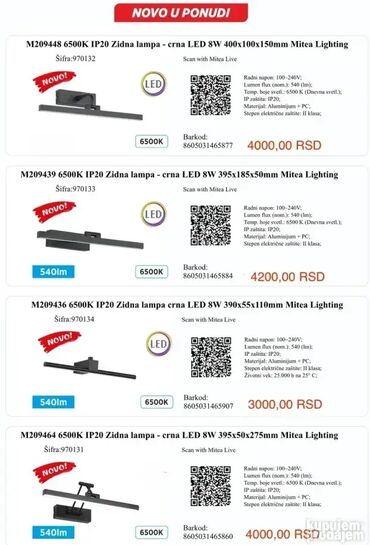 CrnaModerne crne LED zidne lampe - 8W, 6500K , različite dimenzije Opis: Unesite moderan izgled i energetsku efikasnost u vaš prostor uz naše crne LED zidne lampe. Svaka lampa radi na 8W , pružajući svetlu dnevnu belu boju od 6500K i svetlosni tok od 540 lm , idealno za savremenu atmosferu. Izrađene od aluminijuma i PC materijala , ove lampe imaju IP20 zaštitu i pripadaju klasi zaštite II, što ih čini pouzdanim za unutrašnju upotrebu. Dostupne u različitim dimenzijama, ove zidne lampe odgovaraju različitim prostorima i stilovima, bilo kao ambijentalno ili funkcionalno osvetljenje. Jednostavne za montažu i sa životnim vekom do 25.000 sati , predstavljaju praktično i elegantno rešenje za osvetljenje.
