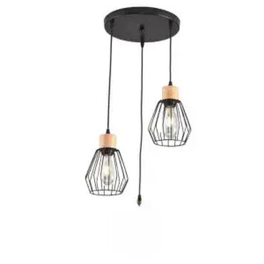 KablMPDF TNN EDVIN 3*E27, 013140. Plafonska lampa luster. Tip grla: E27. Broj mesta: 1. Napon: 220V. Materijal: Metal drvo. Boja same konstrukcije ovog modela plafonske lampe je crna, a sami nosaci sijalica, tj. sijalična grla su drvena. Podesiva visina.