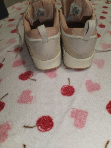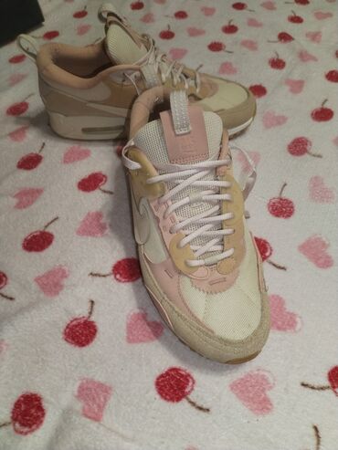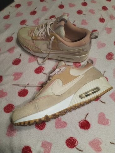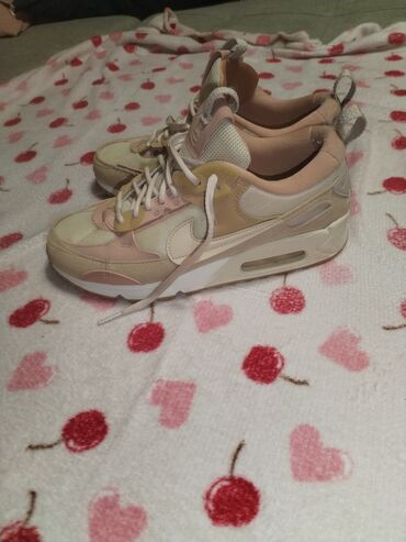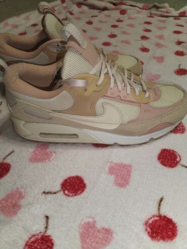 Patike Nike Air Max u nežnim tonovima bež i roze boje. Gornjište je izrađeno od kombinacije prozračnog mrežastog materijala, glatku panela i antilopa pružajući udobnost i podršku. Karakterišu ih klasičan sistem pertlanja i prepoznatljiv Nike logo sa strane. Vidljiva vazdušna jedinica u đonu doprinosi udobnosti pri svakom koraku. Petlja na peti olakšava obuvanje. Idealne su za svakodnevno nošenje i sportske aktivnosti.Kupljene u Veroni. Nošene svega par puta. Ne odgovara broj.