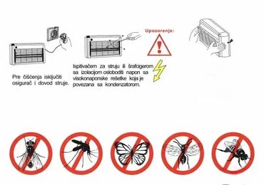 Ova anti-insekt lampa je specijalno napravljena za uništavanje letećih štetnih insekata (komaraca, muva, smrdibuba, stršljena, leptira, moljaca, osa, obada. . . ). Eliminiše sve potencijalne insekte koji Vam mogu smetati prilikom večernjih odmora u Vašem domu ili otvorenoj bašti. Fluo cevi emituju specijalnu boju svetlosti koja privlači insekte na visokonaponsku rešetku i automatski ih uništavaju! Lampa poseduje pokretnu prihvatnu posudu u kojoj se skupljaju uništeni insekti nakon što ih visokonaponska rešetka sprži. Jedino je UV-A svetlost koju ova lampa emituje bezopasna i bezbedna po ljude i životinje! Idealna je za dnevne i spavaće sobe, kuhinje, hotele, restorane, hodnike, prodavnice hrane, mesare, i ostala okruženja gde se mogu javljati leteći insekti. NAPOMENE: Obratite pažnju da ne bude vode na visokonaponskoj rešetki. Lampa je isključivo namenjena za upotrebu u zatvorenim prostorijama i ne sme se koristiti u spoljnim uslovima, kao ni u štalama, ambarima i sličnim lokacijama. Nije predviđeno da ovaj proizvod koriste deca, osobe sa umanjenim fizičkim, senzornim ili psihičkim sposobnostima. Ne ostavljati uključen proizvod bez nadzora. Ukoliko duže vreme ne koristite proizvod, isključite iz struje. Ne dodirujte metalnim predmetima visokonaponsku rešetku. Ukoliko primetite bilokakvu nepravilnost u toku rada, odmah isključite uređaj i obratite se stručnom licu. **Rok isporuke 2-5 dana.**
