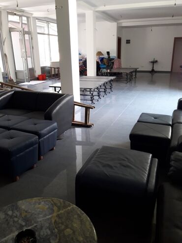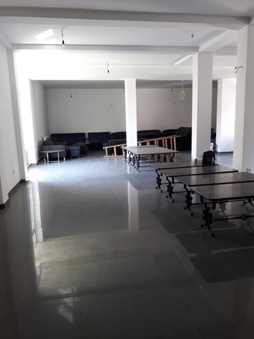 Prostrani poslovni prostor sa otvorenim planom, idealan za različite komercijalne namene. Prostor je opremljen tamnim podnim pločicama visokog sjaja koje reflektuju svetlost, dajući mu moderan izgled. Nekoliko stubova je raspoređeno unutar prostora, pružajući podršku i mogućnosti za pregrađivanje. Uz zidove se nalaze tamne sofe i taburei, pogodni za kreiranje zone za sedenje ili čekaonice. Dodatno, prisutno je više stolova sa tamnim površinama i metalnim postoljima, koji se mogu koristiti za radne stanice, izlaganje proizvoda ili kao trpezarijski stolovi. U prostoru se takođe nalazi drvene merdevine i drugi predmeti, što ukazuje na fleksibilnost uređenja. Veliki prozori i vrata obezbeđuju obilje prirodnog svetla, čineći prostor svetlim i prozračnim. Pogodan je za kancelarije, izložbene salone, ugostiteljske objekte ili druge komercijalne delatnosti koje zahtevaju fleksibilan i prostran ambijent.