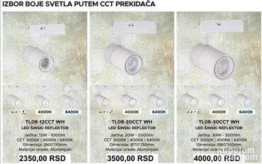 Prekidač za odabir boje svetlaJačina: 20WIzvor svetla: LEDBoja svetla: 3000K/4000K/6400KJačina svetla: 2000lmNapon: 220-240V / 50-60HzBoja: BELAMaterijal: AluminijumDimenzije: d: 130mm Ø 70mmStepen zaštite: IP20Proizvođač: Forma U ponudi šine za led trake od 1m i 2m, u crnoj i beloj boji: Crna šina 1m 800rsd Bela šina 1m 800rsd Crna šina 2m 1300rsd Bela šina 2m 1300rsd U ponudi šinska rasveta vrhunskog kvaliteta, po najpovoljnijim cenama, za ponude, šine, nastavake i prateću opremo kontakt, popust na veću količinu kao i avansne uplate. Garancija 2 godine.