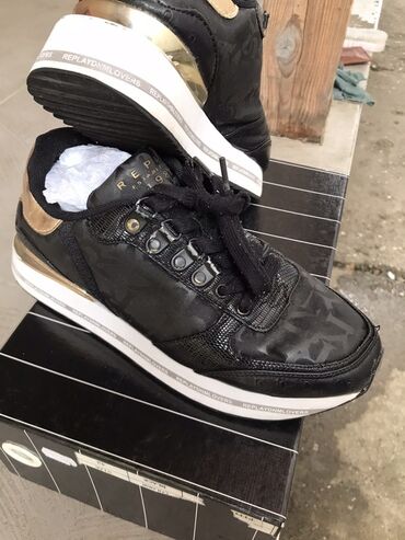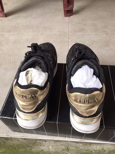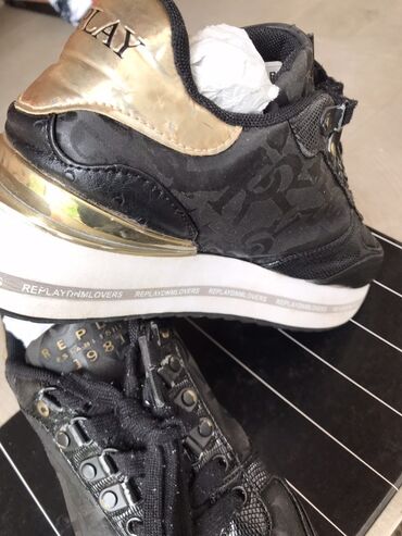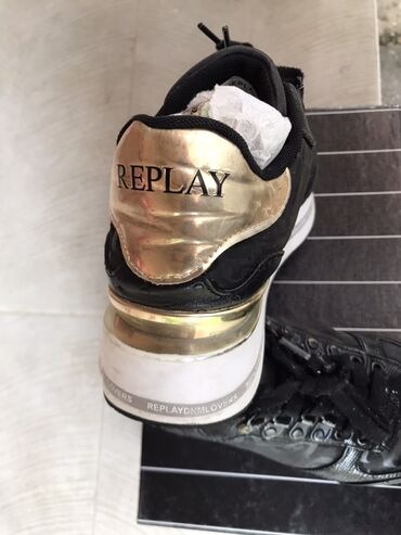 - Dizajn: naglašen sjajni zlatni “heel counter” sa velikim REPLAY natpisom; moderan, urban izgled