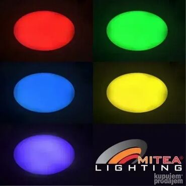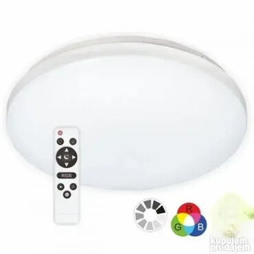 ŠarenoRgb plafonjera sa promenama boja preko daljinskog i takodje upravljanje putem aplikacije, takodje se koristi i kao obična plafonjera sa standardnim bojama svetla.