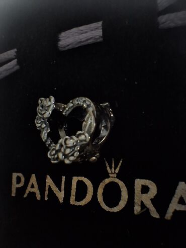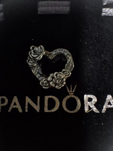 Romantični PANDORA privezak (šarm) u obliku srca obavijenog ružama, izrađen od oksidisanog sterling srebra (S925). Ima detaljan, reljefni cvetni dizajn.