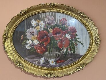 - Set ukrasnih goblena sa klasičnim motivima: ptičica na gnezdu sa cvećem (ovalni manji format), veliki buket poljskog cveća i bulki u vazi (dva prikaza velikog ovala) i pastoralna scena sa pastirima i ovcama (pravougaoni format).
