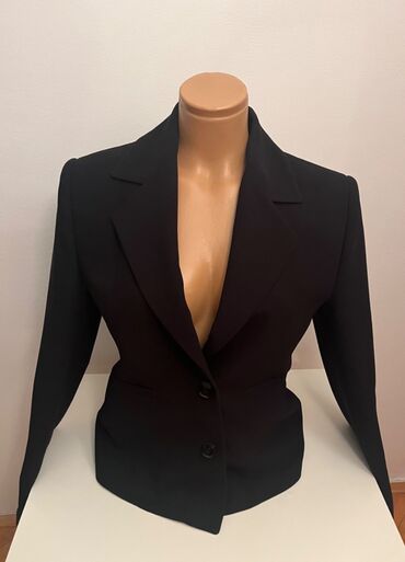Ženski sako – tamnoplavi sa belim “mramornim” šarama - Krojen strukirano, sa blagim peplum završetkom koji prati liniju tela - Revers kragna klasičnog kroja - Kopčanje na dva velika dugmeta napred...