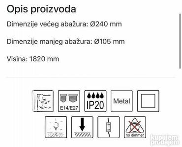 LEDŠifra: 2122 Bela 2124 Crvena 2123 Narandžasta 2171 Zelena Brend: MITEA Lighting Barkod: Osnovno pakovanje:1.00 kom Artikal: Podna lampa Tip grla: E14 / E27 Broj grla:2 Ready for LED: DA Boja: Zelena Radni napon:220~240V Izvor svetla: E14 max.40W/E27 max.40W Sij. uključene uz proizvo. : NE Boja abažura: zelena , bela, crvena, narandzassta IP zaštita: IP20 Materijal: Metal Stepen električne zaštit. : II klasa Temperatura okoline:0~ +40 ° C Način montaže: Na pod Prekidač: Međugajtanski Dimabilnost: Ne Dužina kabla:2.5 m Materijal abažura: Plastika ROK ISPORUKE 1/3 radnih dana.
