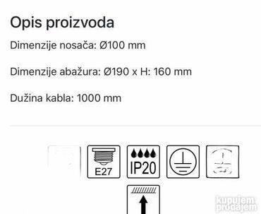Jačina: Max. 60WTip grla: 1xE27Napon: 220-240V / 50-60HzBoja: Mat hromMaterijal: MetalDimenzije: š: 2000mmv: 2310mmStepen zaštite: IP2014 990 RSD