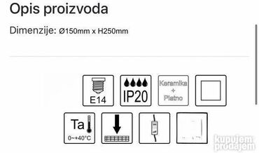 KablŠifra:10932 Brend: MITEA Lighting Artikal: Stona lampa Tip grla: E14 Dimenzije: Ø150mm x H250mm Ready for LED: DA Boja: Bela Radni napon:220~240V Izvor svetla: max.40W Sij. uključene uz proizvo. : NE Boja abažura: Bela IP zaštita: IP20 Materijal: Keramika + platno Stepen električne zaštit. : II klasa Temperatura okoline:0~ +40 ° C Način montaže: Na sto Prekidač: Međugajtanski Dimabilnost: Ne Rok isporuke 2-5 radnih dana.
