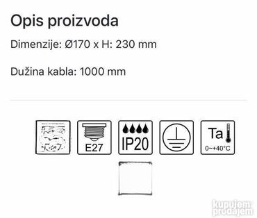 Šifra:11010 Brend: MITEA Lighting Artikal: Viseća lampa Tip grla: E27 Broj grla: 1 Ready for LED: DA Boja: Staro zlato Radni napon: 220~240V Izvor svetla: max. 60W Sij. uključene uz proizvo. : NE IP zaštita: IP20 Stepen električne zaštit. : I klasa Temperatura okoline:0~ +40 ° C Način montaže: Na plafon