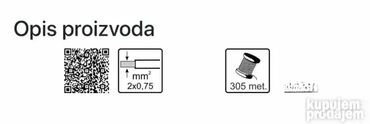 Koaksijalni kabl RG59+2x0.75 BC 300m Naziv: RG ?0.75 Materijal jezgra: 100% bakar-pun presek Precnik jezgra: 0.81 mm Alu folija: Da boje bakra Gustina pletenice: 90% CCA Napojni kabl: Da-licnasti ...3 300 RSD