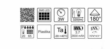 **Baterija sijalice: 3.7V 2600 mAh Lithium ion - zamenjiva**
