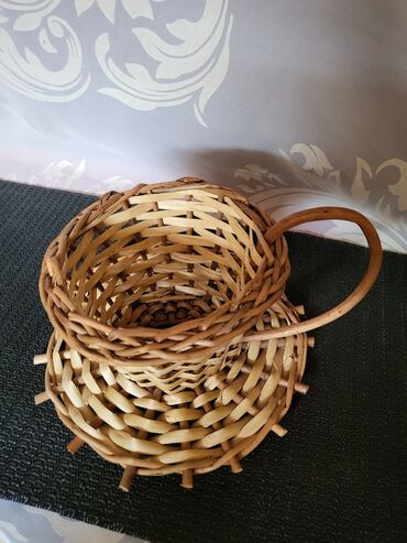 Dekorativne betonske saksije u obliku pletene korpe sa drškom. - Materijal: liveni beton, stabilan i težak, pogodan za spoljašnju upotrebu tokom cele godine - Dizajn: reljefna imitacija pletenja s...