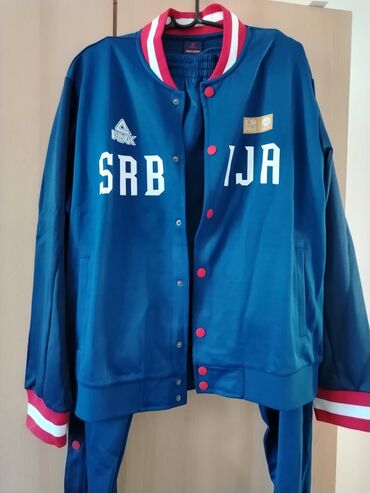 - Gornji deo: jakna na drukere (crveni tasteri), prugasti rebrasti okovratnik, manžetne i pojas; natpis “SRB IJA” napred; PEAK logo na grudima; bočni džepovi. Bedž/etiketa jubileja „100 Years“ FIBA/olimpijski komitet (zlatni kvadrat) na desnoj strani grudi.
