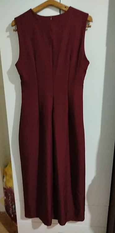 Elegantna midi haljina bez rukava u boji bordo vina.