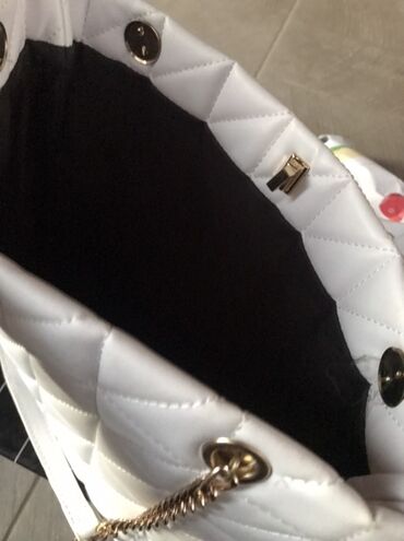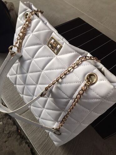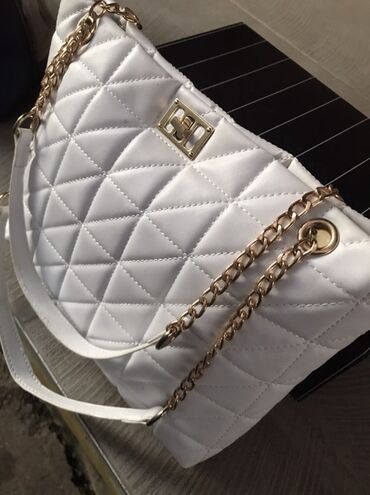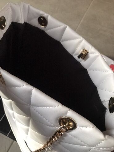 - Dvostruki kaiševi: kombinacija zlatnog lanca i belih kožnih umetaka za udobno nošenje na ramenu ili u ruci