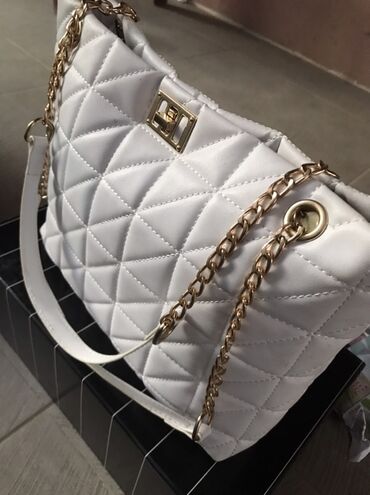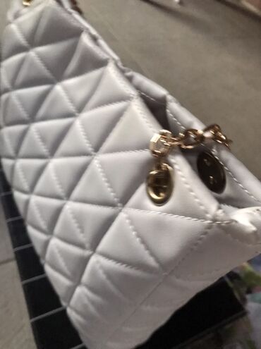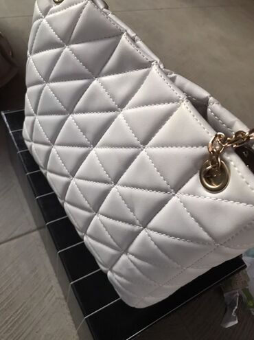BelaElegantna ženska torba – bele boje, sa prepoznatljivim prošivenim (quilted) dezenom u rombovima. Materijal je glatka eko koža, prijatna na dodir.