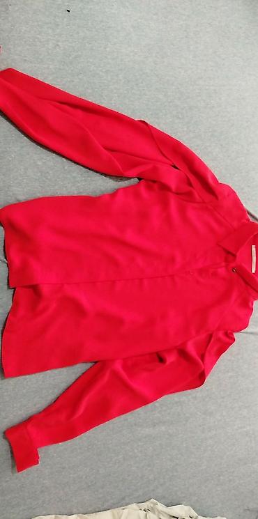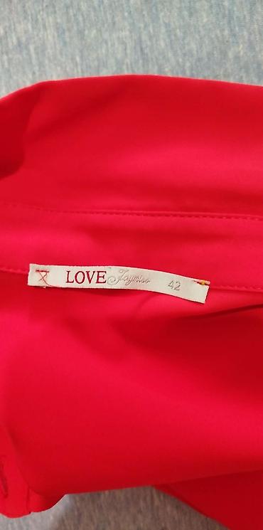 - Košulja: dugački rukavi, klasična kragna i polu-kopčanje napred na dugmad. Intenzivno crvena boja. Brend: LOVE Joymiss, veličina 42 (etiketa na poslednjoj slici). Lagana, glatka tkanina prijatnog pada.