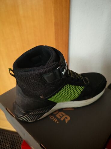 Dečije visoke patike/čizme, crno-bele. - Veličina: 32 - Zatvaranje: pertle + bočni rajsferšlus - Gumeni đon, bela kapica napred - Jedan đon je požuteo - Cena: 500 din Praktične za svakodnevno noše...