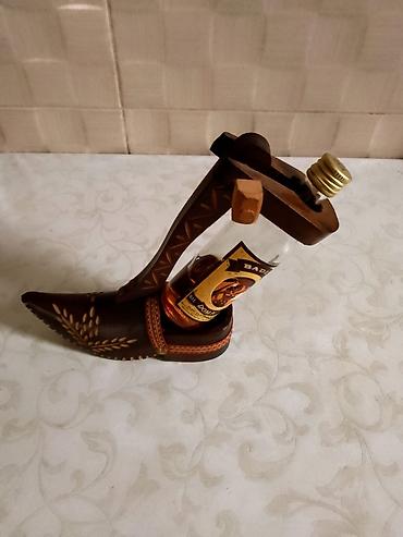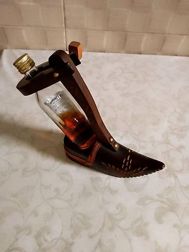 Dekorativni drveni stalak u obliku opanke sa mini flašicom