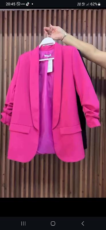 - Ženski blejzer: bez kopčanja, čista linija revera, lagano podvrnuti rukavi za moderan izgled