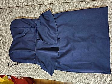 Elegantna ženska haljina u tamno plavoj boji. - Kroj: A-line/suknja pada blago zvonasto; bez rukava. - Izrez: V-izrez napred i pozadi. - Detalji: Dekorativna mašna na jednom bretelu sa ukrasnim kv...