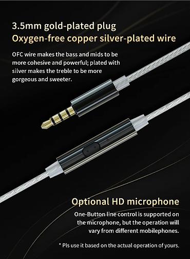 - Odvojivi kabl od bezkiseoničnog bakra, presvučen srebrom, za bolju provodljivost i detaljnost; ergonomskog oblika sa vođicama preko uha