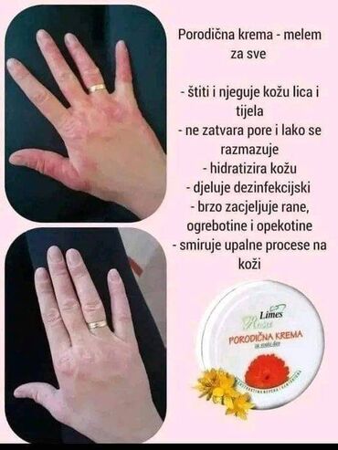 Limes Riza Porodična krema – melem za sve Opis: - Univerzalna krema za lice i telo - Ne zatvara pore, lako se razmazuje - Intenzivno hidrira kožu - Deluje dezinfekciono - Pomaže brzo zarastanje ra...