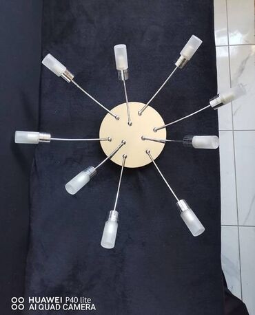 Na krajevima svakog od devet krakova nalaze se male, cilindrične, matirane staklene senke za sijalice.