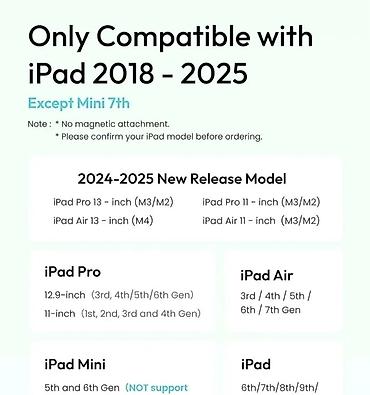 - 2024–2025: iPad Pro 13" (M3/M2), iPad Pro 11" (M3/M2), iPad Air 13" (M4), iPad Air 11" (M3/M2)