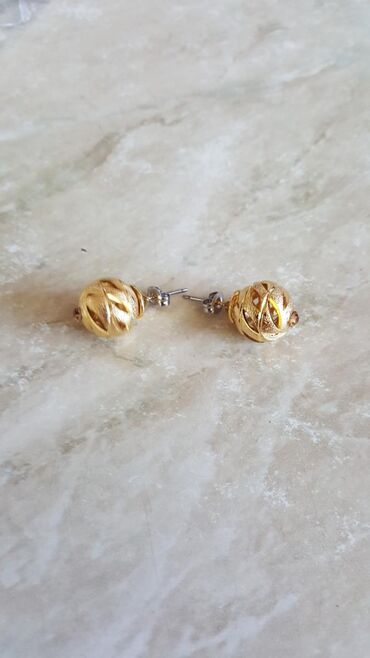 Statement minđuše – set modela - Dramatične zlatne listaste minđuše u obliku lepeze, bogato teksturirane sitnim reljefnim tačkicama koje hvataju svetlost. - Elegantne poluobruče minđuše sa belim...Dogovor